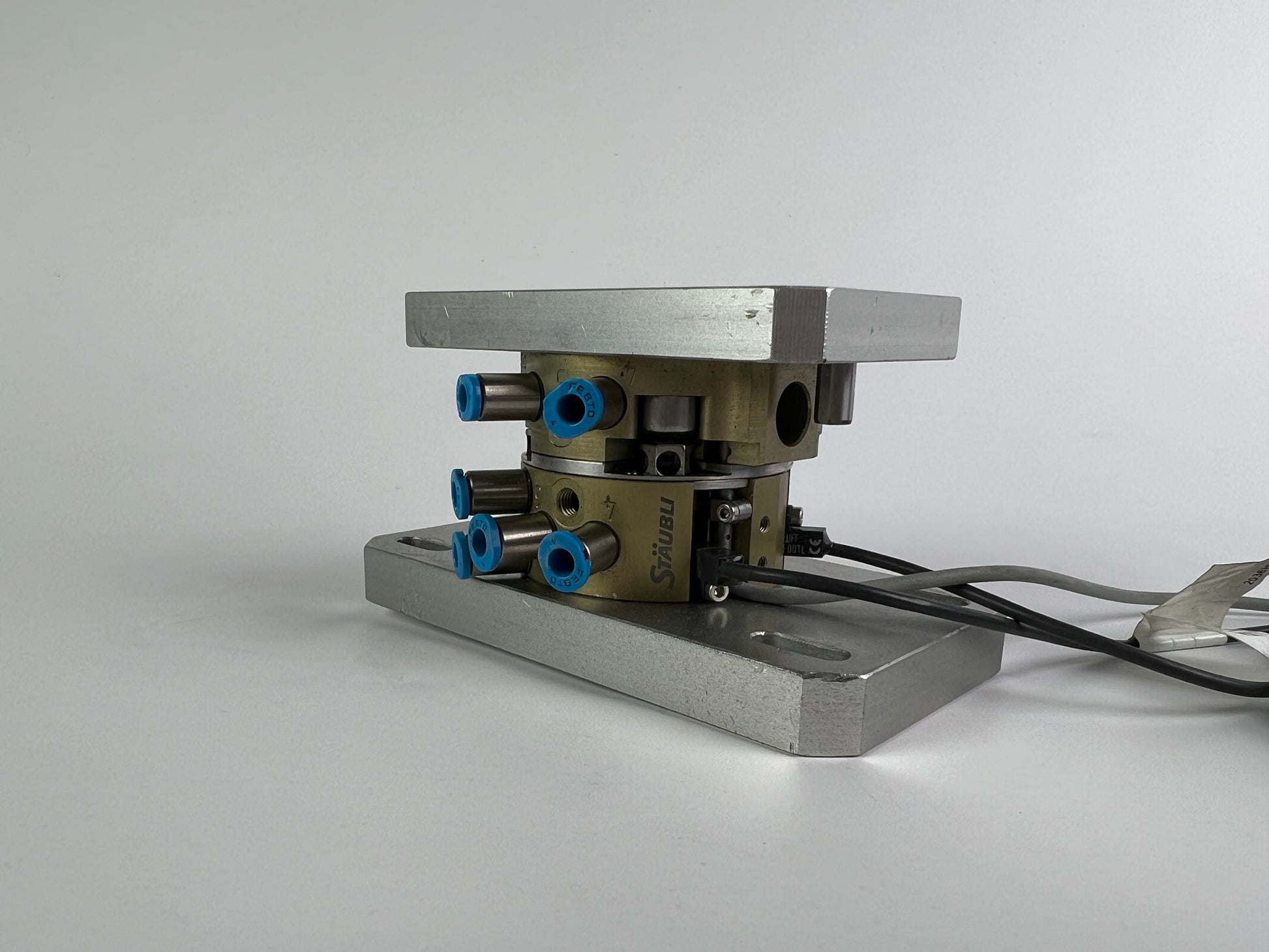 Staubli K85560742/002 B-42 941138 automatic robotic tool equipped with position sensors for precise detection and control in industrial automation systems. This unit is suitable for robotic tool changers and automated handling systems, ensuring reliable and accurate operation.